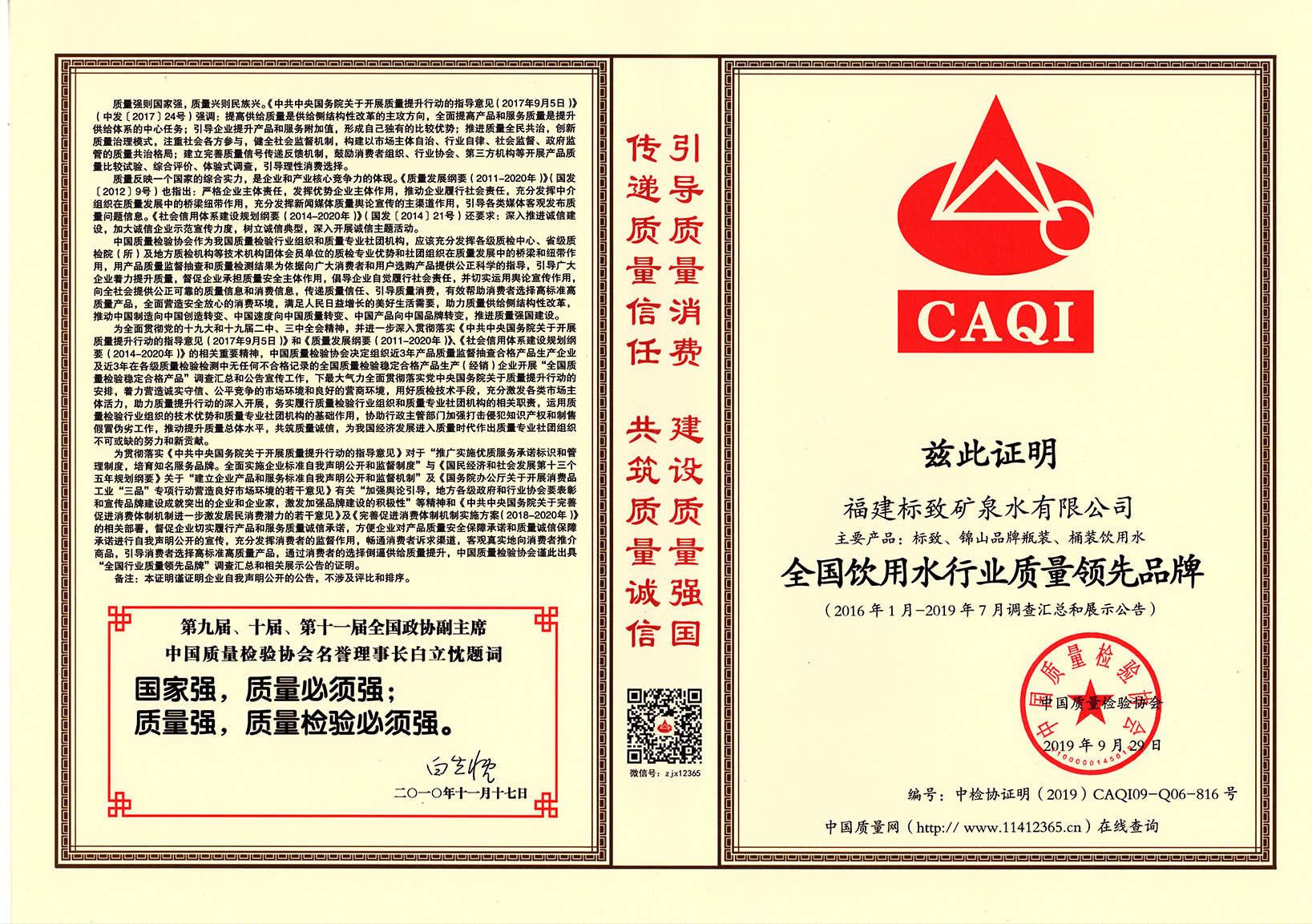 • 2020-03-252019年9月,標致公司榮獲“全國飲用水行業(yè)質(zhì)量領(lǐng)先品牌”稱號